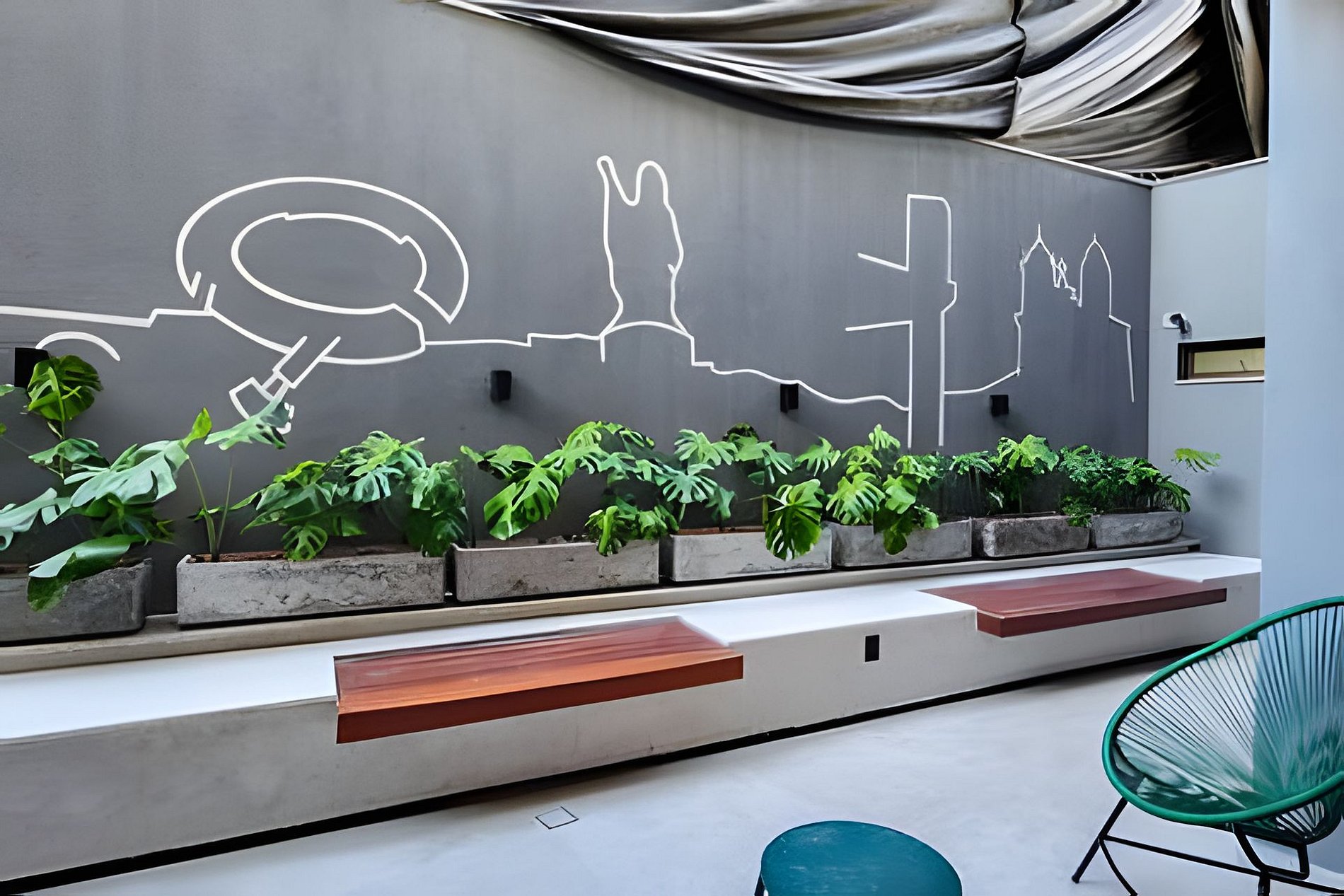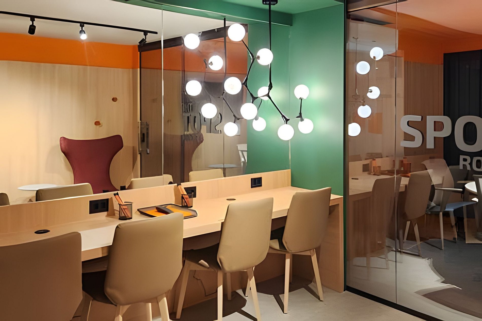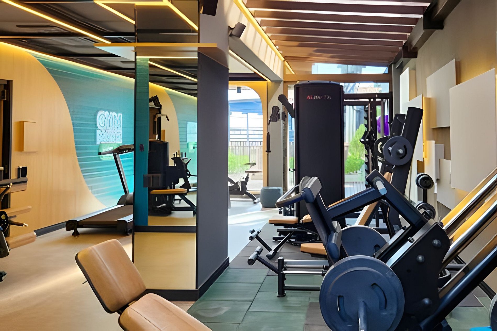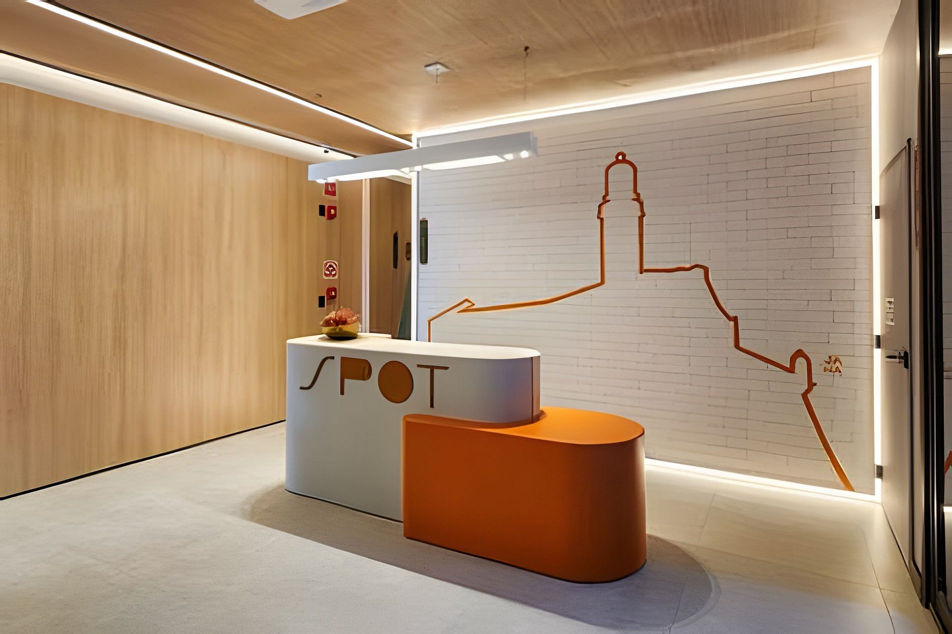 No **térreo**, os hóspedes encontram **portaria, espaço fitness, lounge, terraço, playground e uma cafeteria**, que serve café da manhã, almoço, jantar e drinks. Também há uma **loja de conveniência (grab and go)** para pequenas compras do dia a dia.