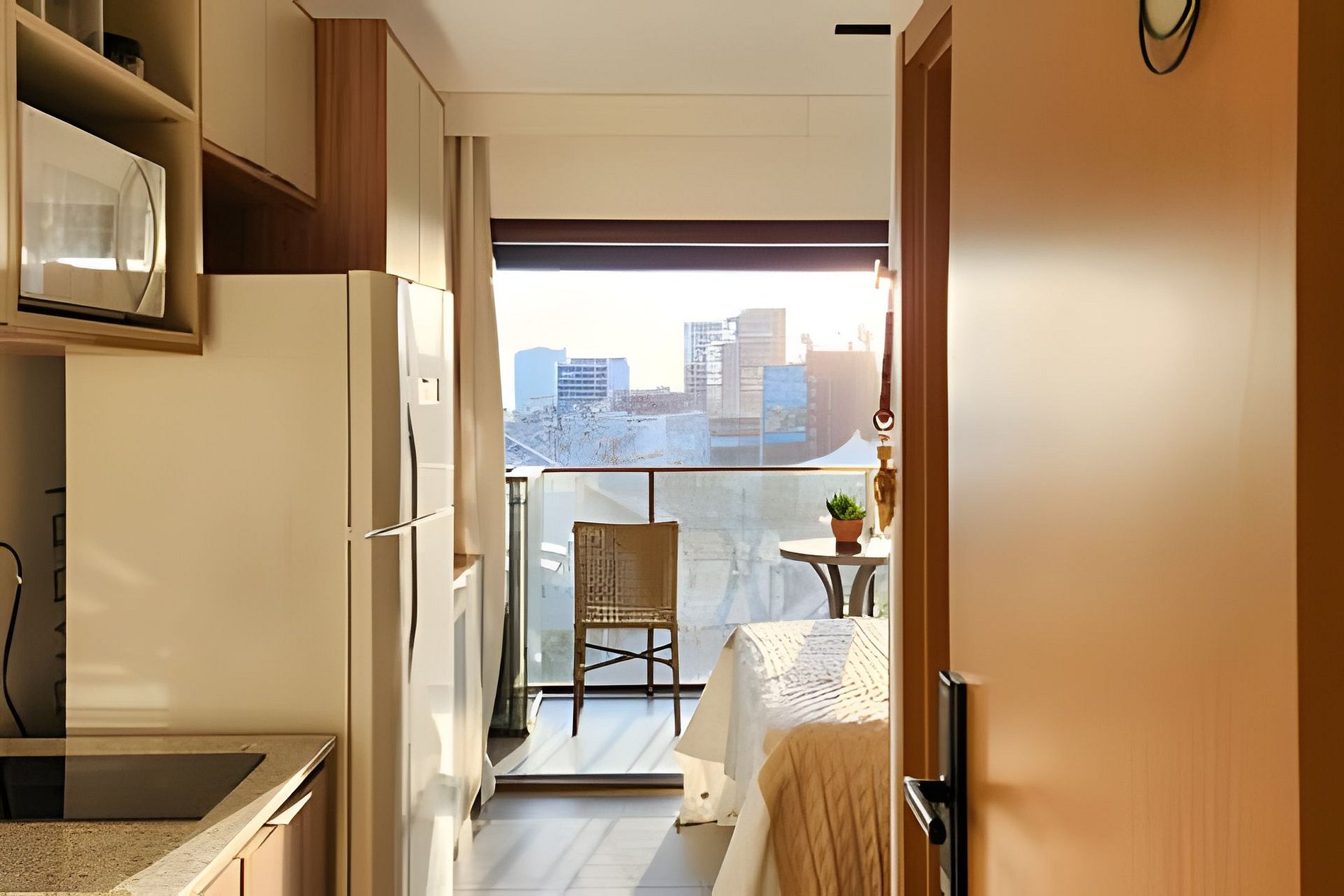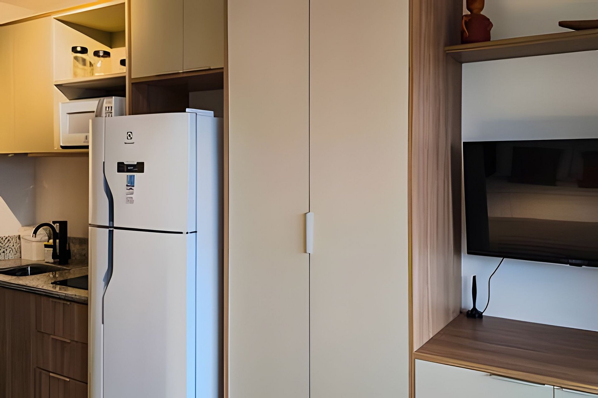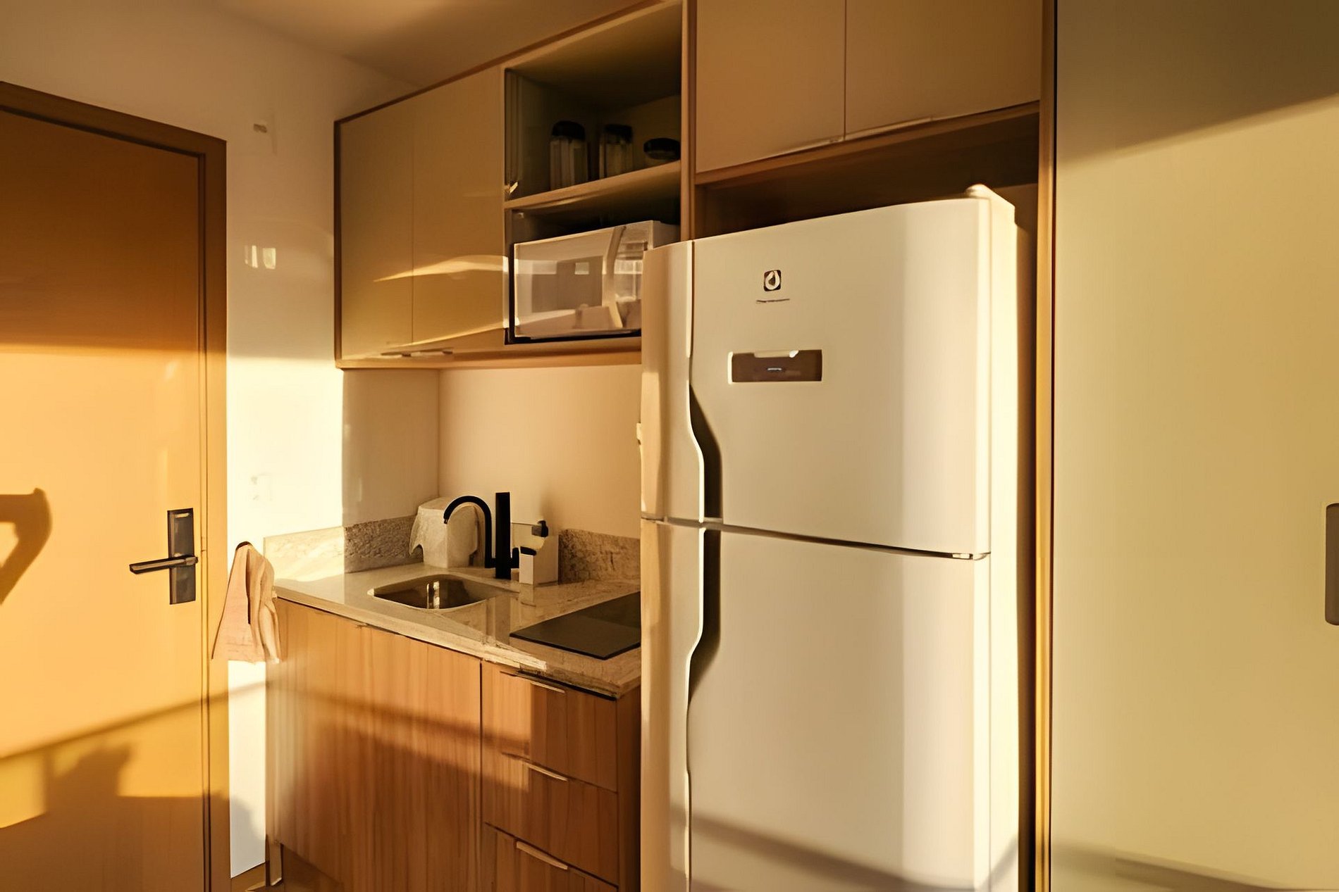 Os hóspedes terão acesso ao studio completo e a todas as comodidades disponíveis no prédio, respeitando as regras de uso do condomínio. Isso inclui o uso das áreas comuns como rooftop com piscina e hidromassagem, espaço gourmet, coworking, academia (fitness), lounge, terraço, playground, lavanderia, bicicletário e loja de conveniência. O prédio também conta com cafeteria no térreo, que serve café da manhã, almoço, jantar e drinks. A vaga de garagem é rotativa, portanto está sujeita à disponibilidade no momento da chegada. **Notas gerais** - Não é permitido receber visitantes. Qualquer dúvida entrar em contato com o anfitrião. - O número máximo de pessoas no imóvel é de até 4 pessoas, incluindo hóspedes e visitantes. - Não é permitido realizar festas no apartamento ou nas áreas do prédio. **Regras importantes do imóvel** Não é permitido animal de estimação. Não é permitido fumar dentro da unidade. O studio é entregue limpo e organizado, e solicitamos que seja devolvido com louças lavadas e guardadas. Fornecemos roupas de cama e banho conforme a quantidade informada na reserva. Em caso de perda ou manchas, será cobrada taxa de R$80 por peça. Caso algum item do studio não esteja funcionando, pedimos que nos informe para que possamos solucionar em até 48 horas. Esse prazo não inclui finais de semana ou feriados, podendo ser estendido até 48 horas após esses períodos. Durante a estadia, o hóspede deverá permitir a entrada do proprietário, administrador ou profissional autorizado, caso seja necessário realizar manutenção ou reparos (ex.: ar-condicionado, vazamentos, descarga, chuveiro etc.). A vaga de garagem é rotativa, portanto está sujeita à disponibilidade no momento da chegada