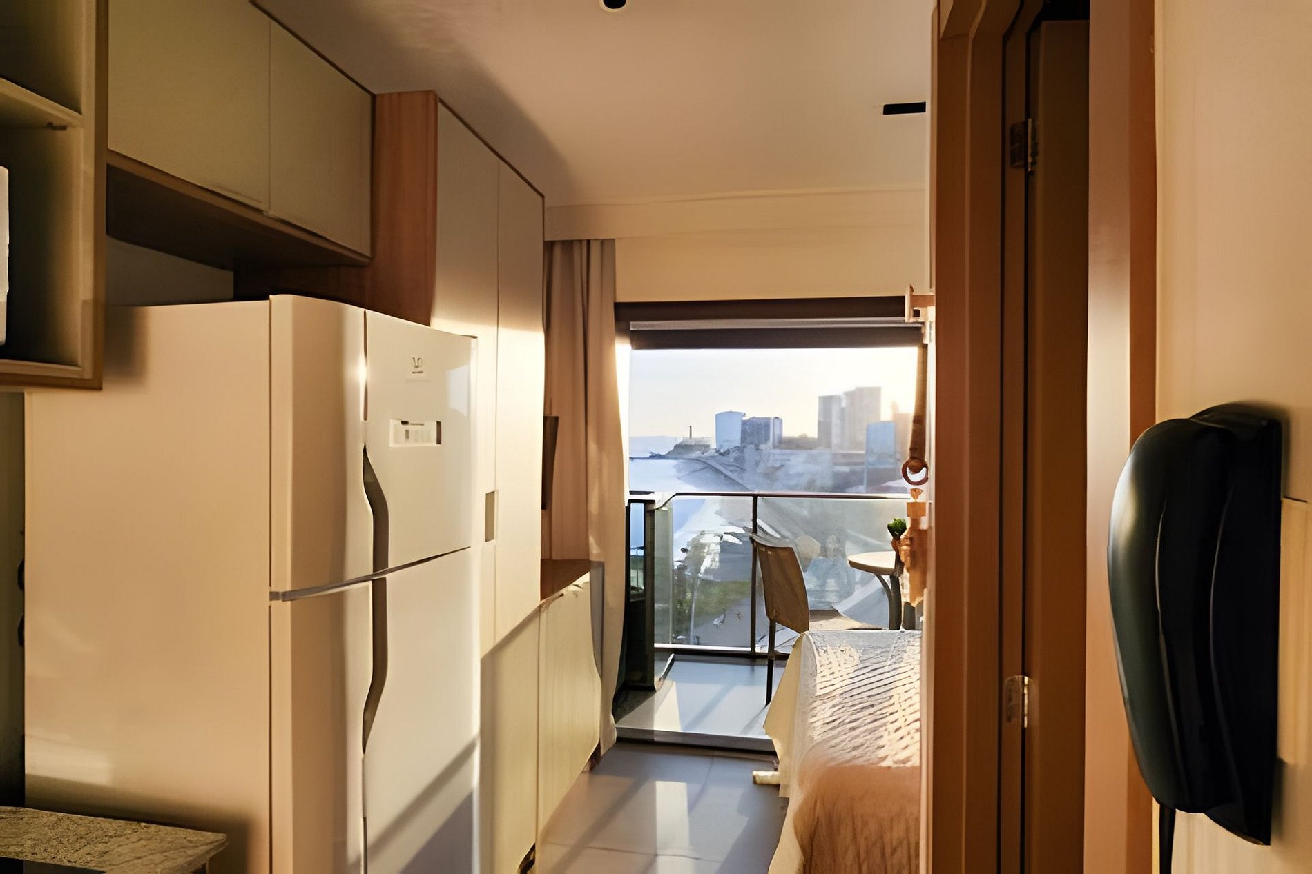 O studio é confortável e funcional, ideal para uma estadia prática e agradável. Possui cama de casal padrão com roupa de cama completa, 4 travesseiros, ar-condicionado, TV Smart e Wi-Fi, proporcionando mais conforto durante a estadia. O banheiro conta com chuveiro quente. A cozinha compacta é equipada com geladeira com freezer, micro-ondas, fogão de indução, sanduicheira, cafeteira, liquidificador, panelas, frigideira, pratos, talheres, copos, taças de vinho e filtro de água, oferecendo praticidade para preparar refeições. O espaço também possui varanda com fechamento em reiki, equipada com mesa e cadeiras, perfeita para refeições ou momentos de descanso, com vista para o mar e para o Farol da Barra. Diferenciais do espaço e do prédio - Vista para o mar - A poucos passos da praia - Rooftop com vista panorâmica do mar - Piscina no rooftop com hidromassagem - Espaço gourmet no rooftop - Coworking no prédio (ideal para trabalho remoto) - Academia / espaço fitness - Cafeteria no térreo do prédio - Loja de conveniência (grab and go) - Lavanderia no prédio - Bicicletário - Garagem no prédio (vaga rotativa, sujeita à disponibilidade) - Carregamento para carro elétrico - Prédio com dois elevadores O imóvel está localizado na Barra, em frente ao Cristo da Barra e próximo ao Farol da Barra, em uma das regiões mais turísticas e privilegiadas de Salvador.