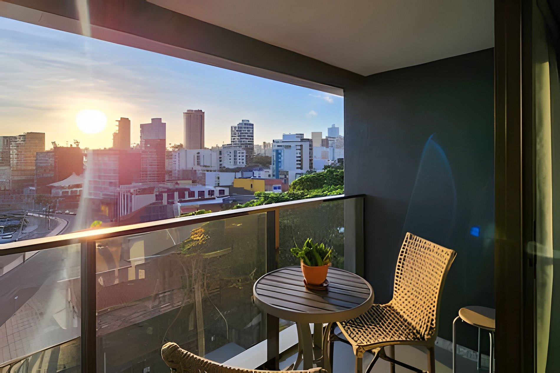 O studio está localizado na Barra em um **prédio moderno de frente para o mar e vista para o Farol da Barra**, com infraestrutura completa pensada para oferecer conforto, praticidade e uma experiência diferenciada aos hóspedes.