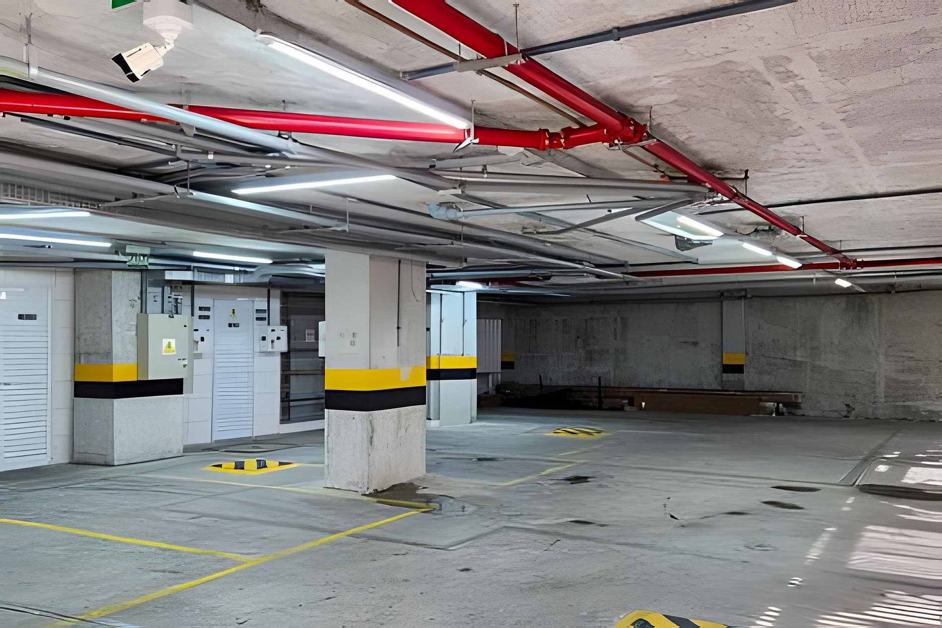 O prédio conta ainda com **1 pavimento de garagem**, com **vagas rotativas para os apartamentos (sujeitas à disponibilidade)**, incluindo **pontos para carregamento de veículos elétricos**, além de **bicicletário, lavanderia e área de descarte de lixo**.